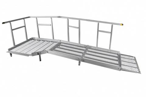 - Parmi les pièces disponibles composant votre rampe modulable personnalisée : pallier pour tourner à 180°, 90°, rampe, garde-corps, pieds support, jonctions, accessoires, marches…