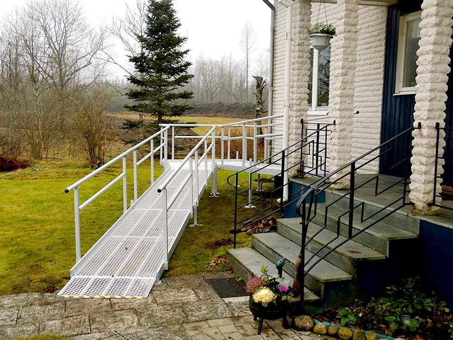 Fabriquée en métal déployé, le dispositif est extrêmement robuste et sera tout à fait capable de supporter des charges importantes. Avec ses garde-corps, il assure également à l’usager une grande sécurité. Surtout, de par son caractère sur-mesure, la rampe peut disposer de l’inclinaison souhaitée pour une pente considérablement adoucie.