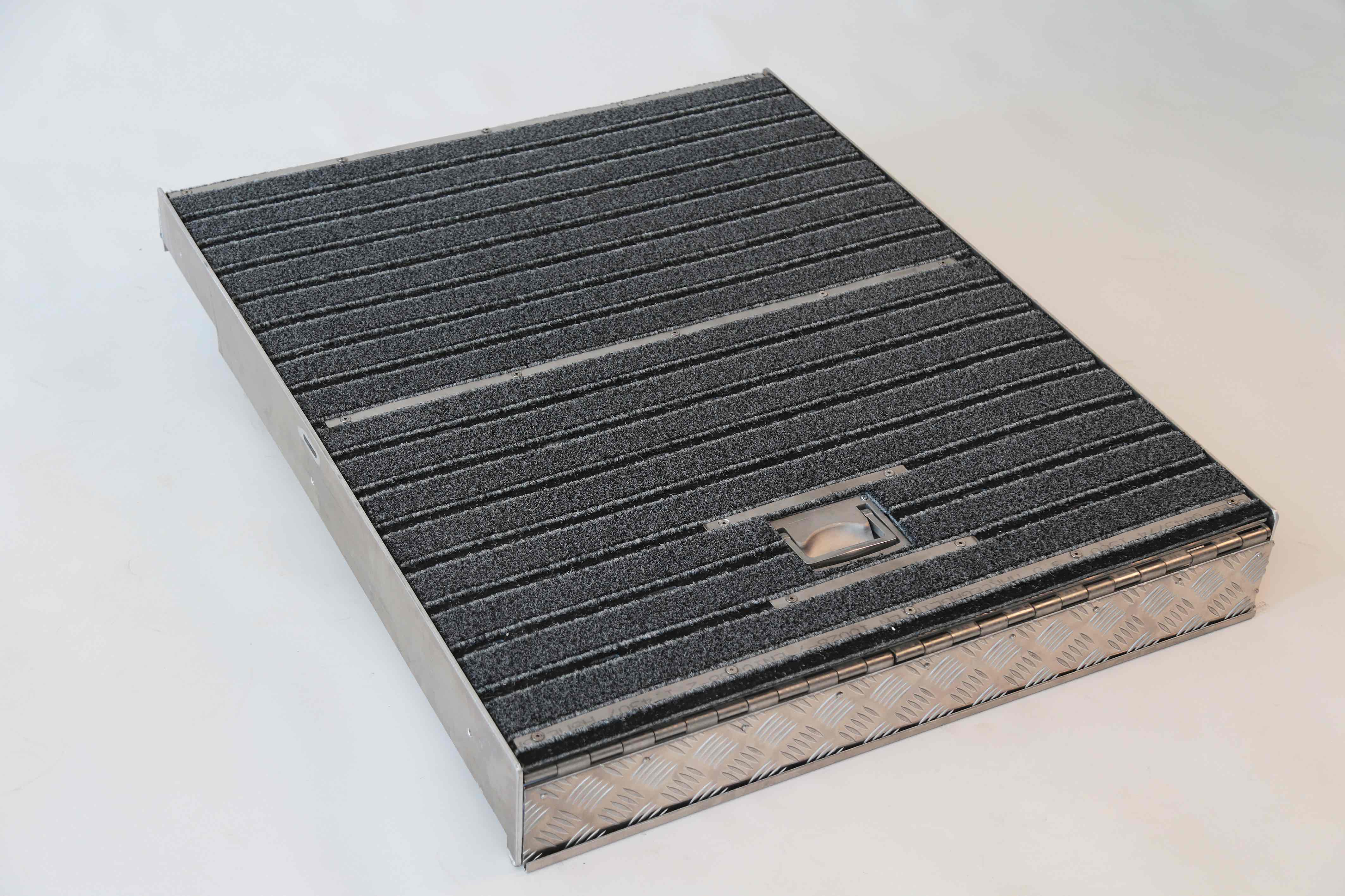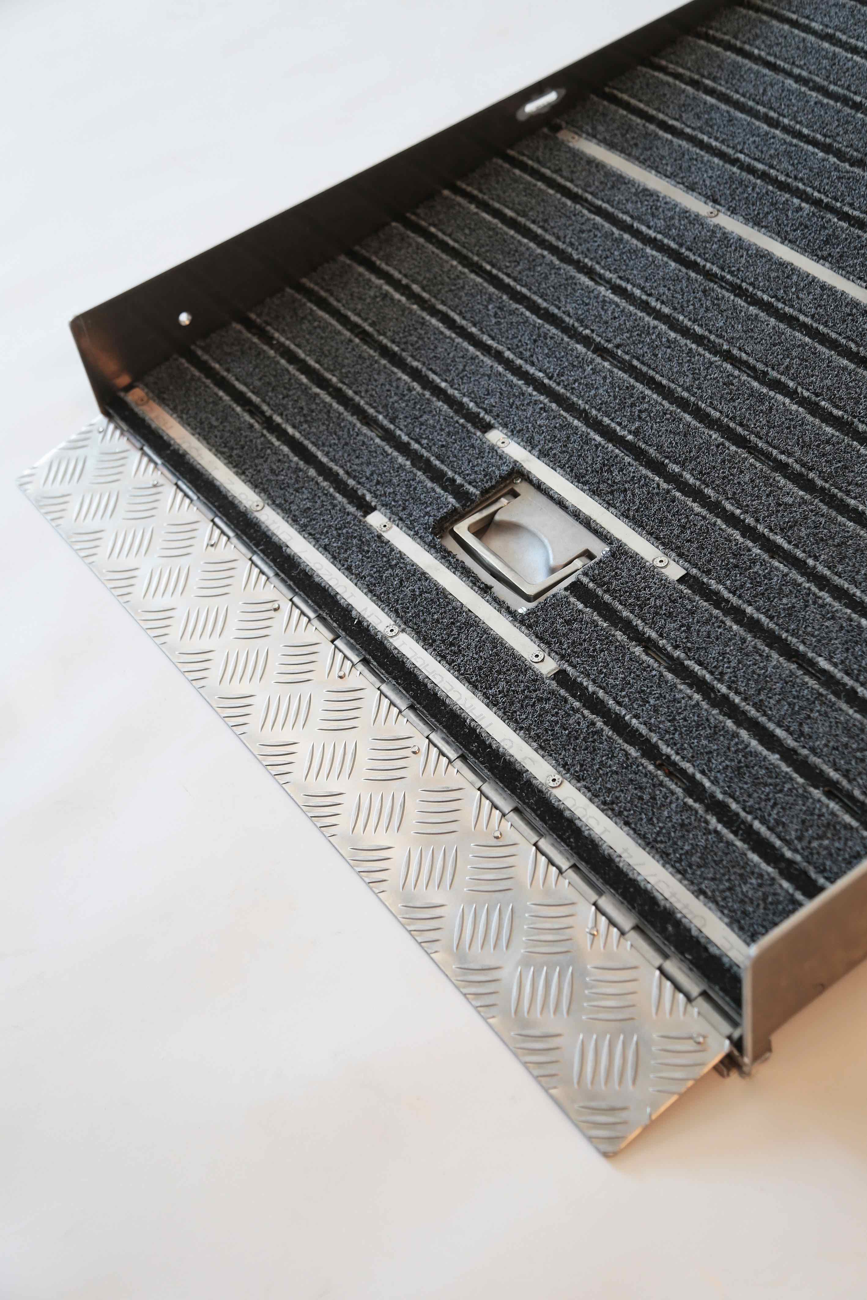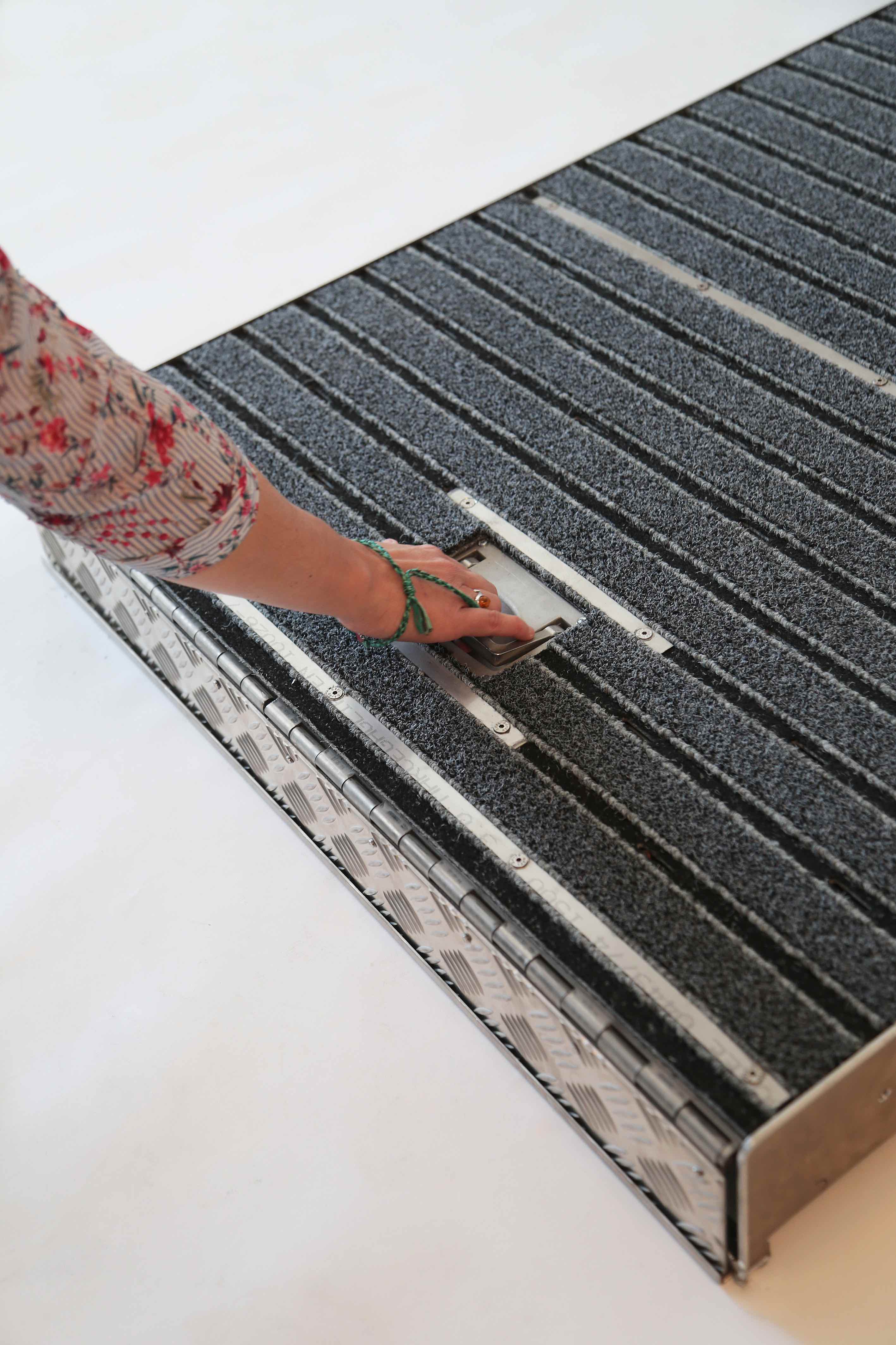 La combi tapis encastrable est une rampe escamotable idéale pour le franchissement de 1 marche. Cette installation est un dispositif encastrable dans le seuil d’un établissement ou espace public. Simple d’utilisation, cette rampe encastrable pour les personnes à mobilité réduite est entièrement conçue en aluminium à damier. Elle est isolée acoustiquement et thermiquement.