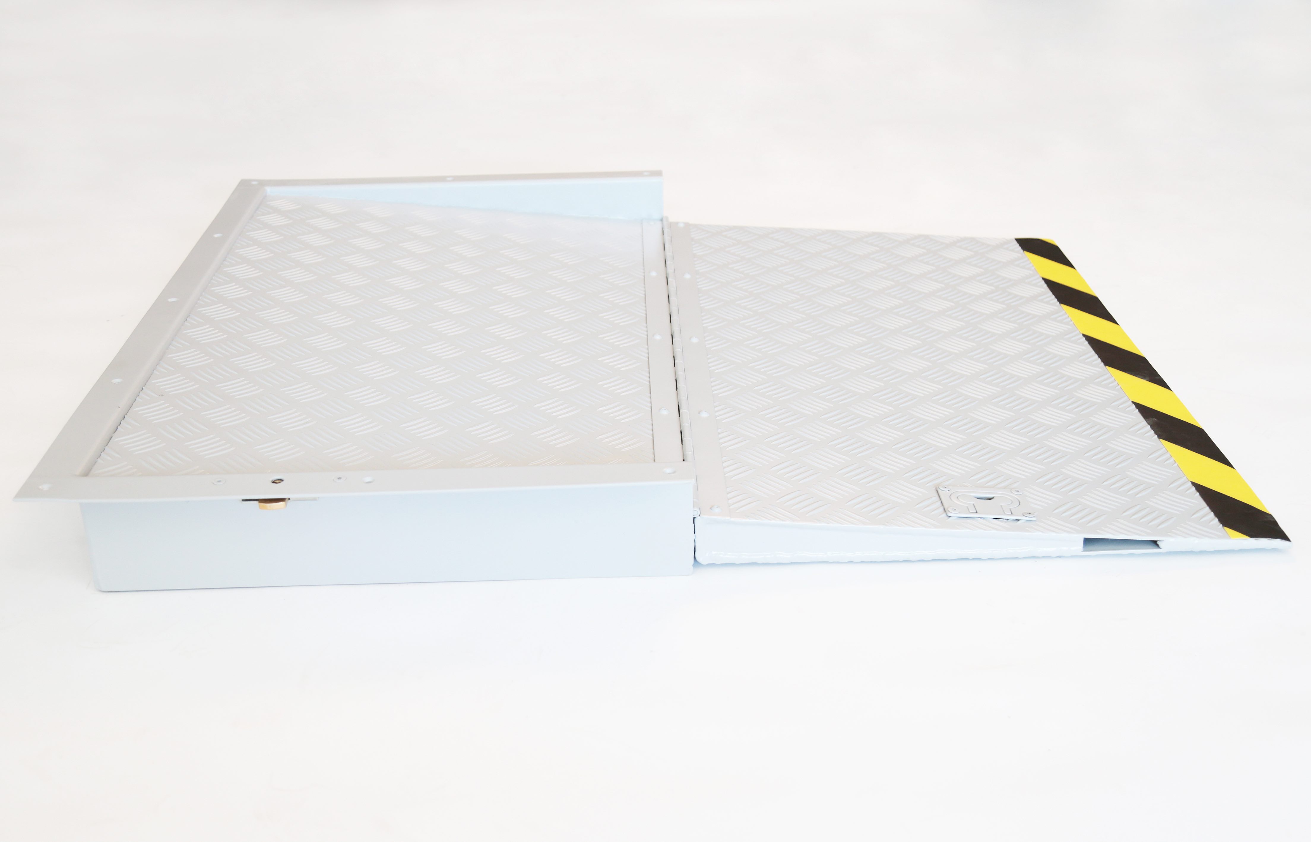 La rampe Duolock est une rampe intégrée escamotable. Celle-ci est idéale pour le franchissement d’une marche. Ce dispositif, entièrement en aluminium à damier, est encastrable dans le seuil de l'établissement.
