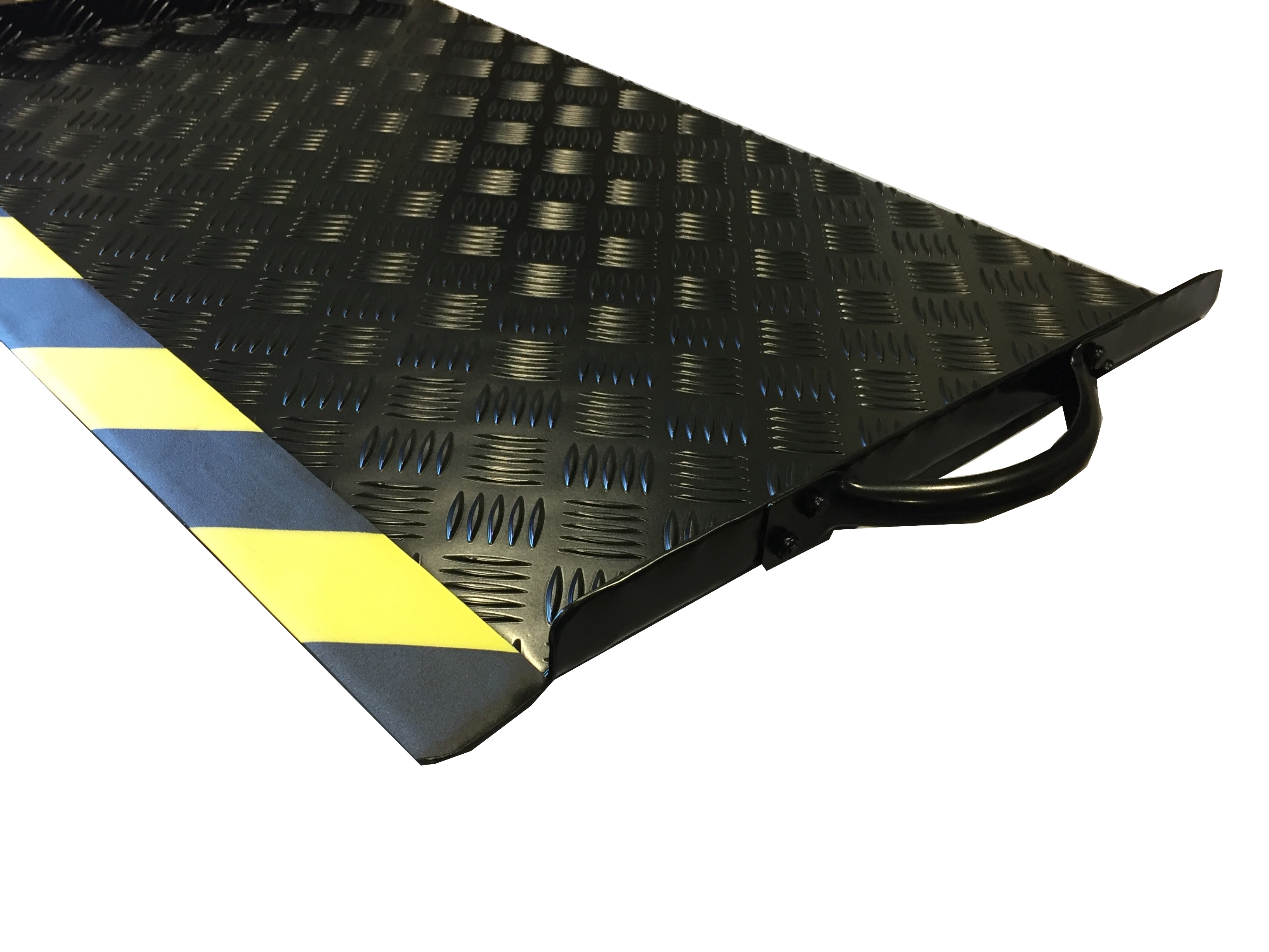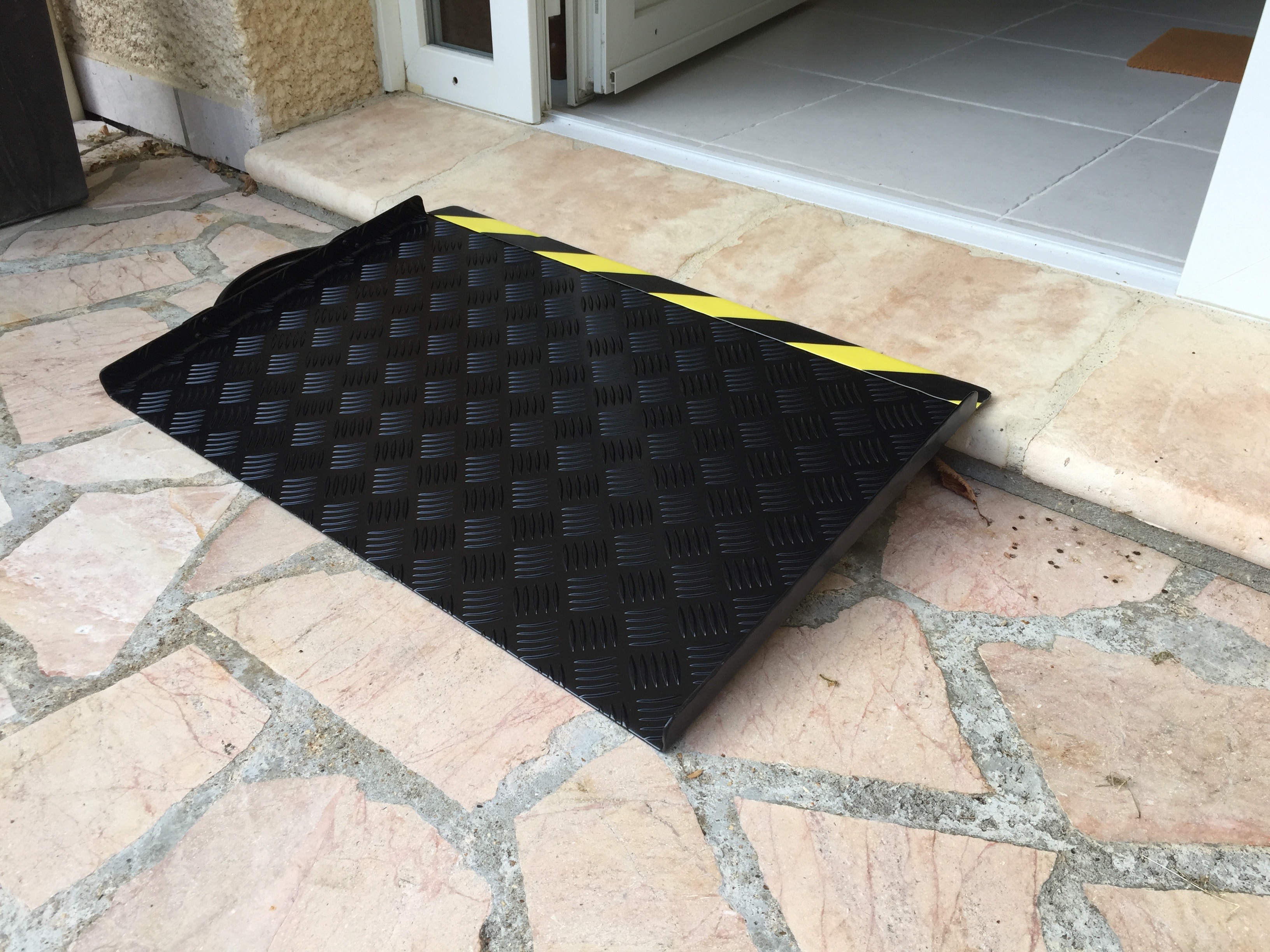 Rampe de seuil simple en aluminium à damier (surface antidérapante)Bande signal sur le rebord + bande antidérapante en dessous